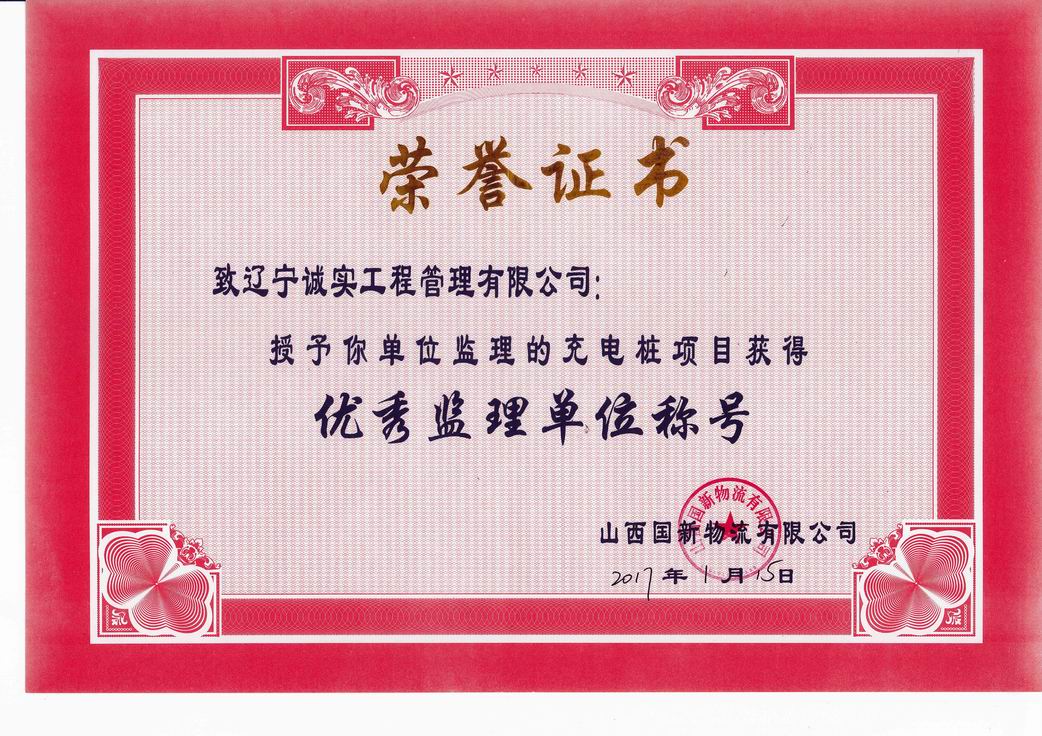 2017年山西國新物流有限公司優(yōu)秀監(jiān)理單位