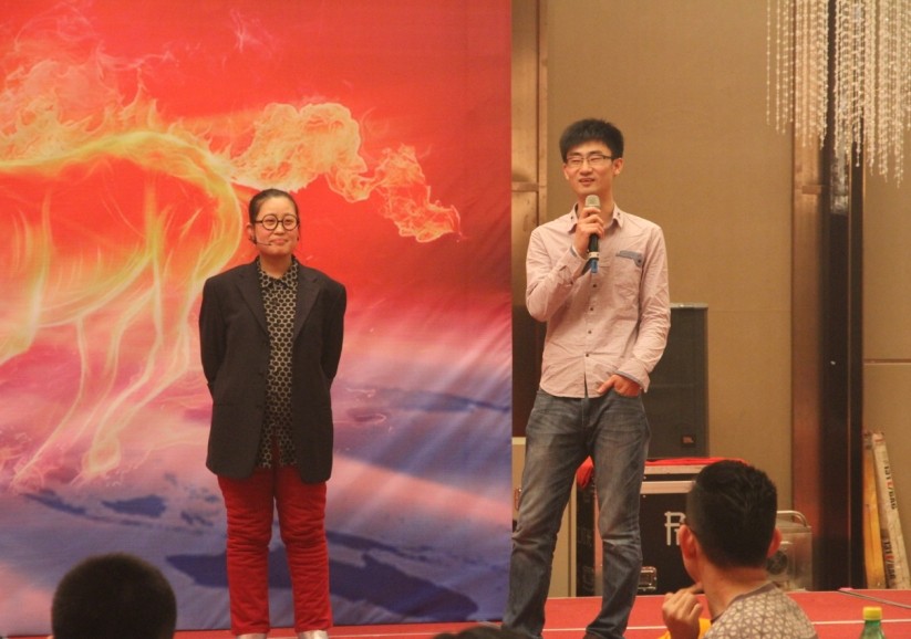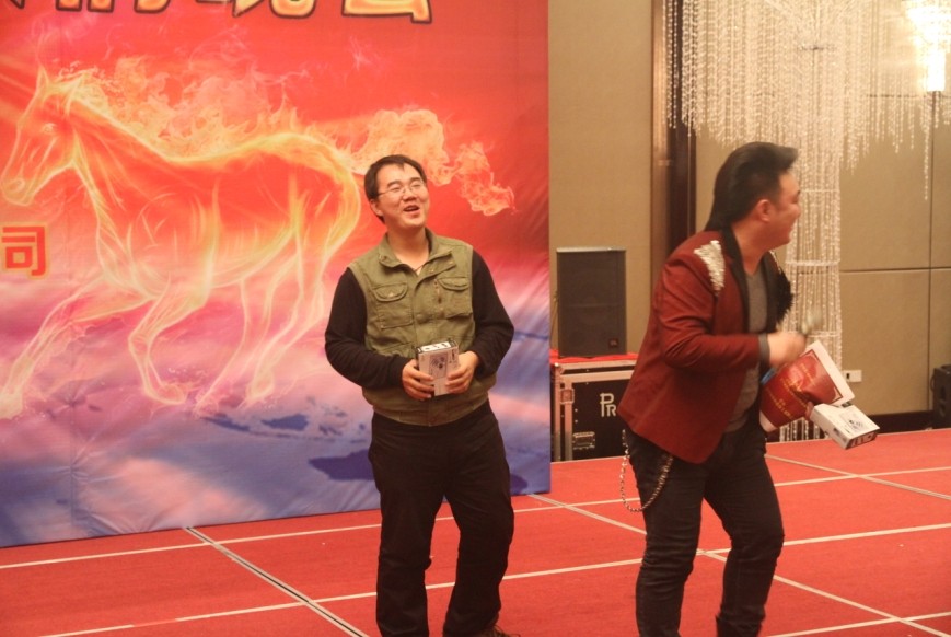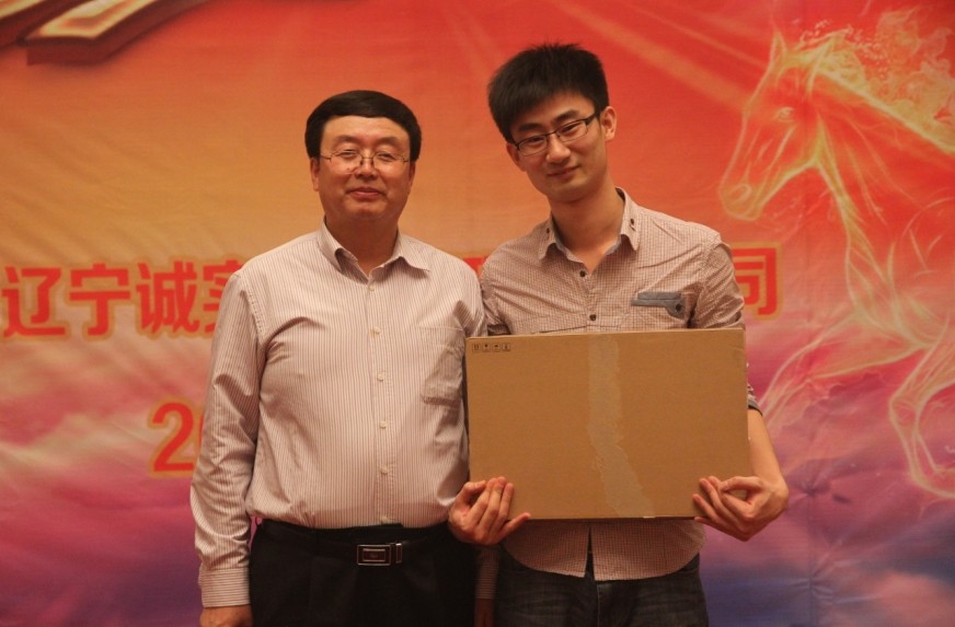 最后一位大獎(jiǎng)得主,獲得筆記本電腦一臺(tái),與孫總合影留念