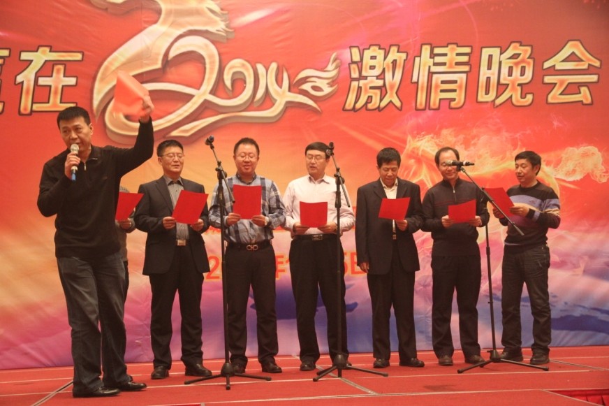 年終總結(jié)大會(huì)由副總經(jīng)理祝奕主持?偨(jīng)理孫學(xué)良和董事長趙劍平分別進(jìn)行了發(fā)言。