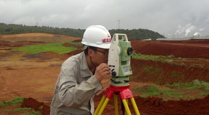 監(jiān)理人員對(duì)填方區(qū)高程進(jìn)行復(fù)測(cè)(遼寧誠實(shí)拍攝)